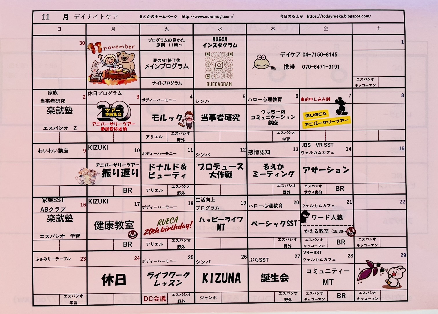 デイケア「るえか」では、リカバリーのためのさまざまなプログラムを行っています。